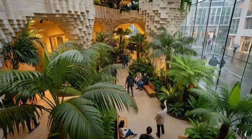 THE ROOFSCAPE EXTENDS THIS LOGIC AS A THREE-DIMENSIONAL TERRAIN, PUNCTURED BY COURTYARDS AND LIGHT WELLS THAT BLUR THE BOUNDARY BETWEEN INTERIOR AND EXTERIOR. AT STREET LEVEL, THE BUILDING ENGAGES THE URBAN FABRIC THROUGH TRANSPARENCY AND DEPTH, REPLACING THE TRADITIONAL STOREFRONT WITH A SPATIALLY RICH, IMMERSIVE RETAIL ENVIRONMENT.